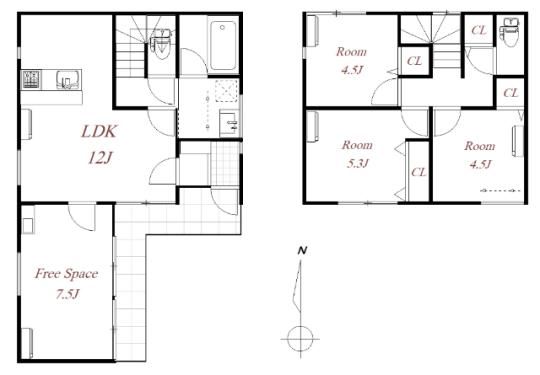 新築築の2階建ての一戸建てで、お部屋は2階建ての1階部分です。
