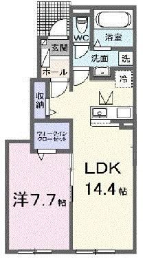 1LDK( 洋室7.7畳/LDK14.4畳 ) |