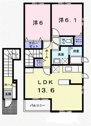ローズウィンドゥB 阿左美の2LDK賃貸アパート